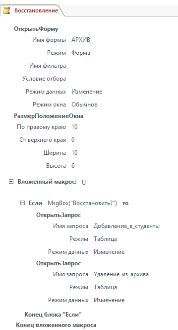 В ходе работы я познакомился с созданием различных макросов в Access.