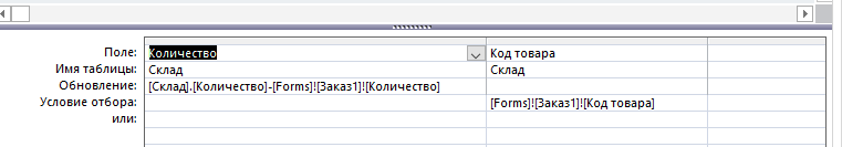 Создаю запрос на выборку на основе таблицы Склад и задать условие отбора: [Forms]![3аказ1]![Код товара] .