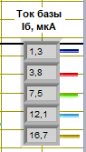 IК = 3,67 мА; (зеленый) Токи базы указаны в легенде, справа от ВАХ