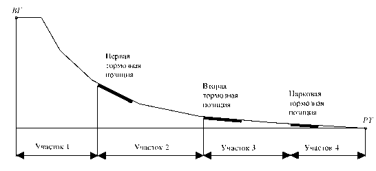 Согласно нормам для выполнения расчета горочная горловина делится на расчетные участки в соответствии со схемой, представленной на рисунке 1.