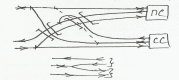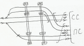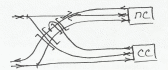 При проектировании схем развязок в жд узлах стараются минимизировать кап. затраты. Одним из способов является частичное слияние линий с не большими размерами движения. При объединении линий обязательно производится проверка пропускной способности участков пути в случае их объединения. допускается объединение сонаправленных участков двухпутных линий, а также 2-х однопуток. В некоторых случаях, например, при благоприятных условиях рельефа или наличии контурных препятствий, вместо дополнительного путепровода устриваются петли (б вместо а)
