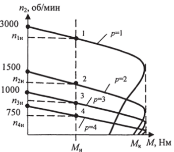 3. Способы регулирования частоты вращения асинхронных двигателей с короткозамкнутым ротором. Привести соответствующие механические характеристики при различных способах регулирования частоты вращения ротора.