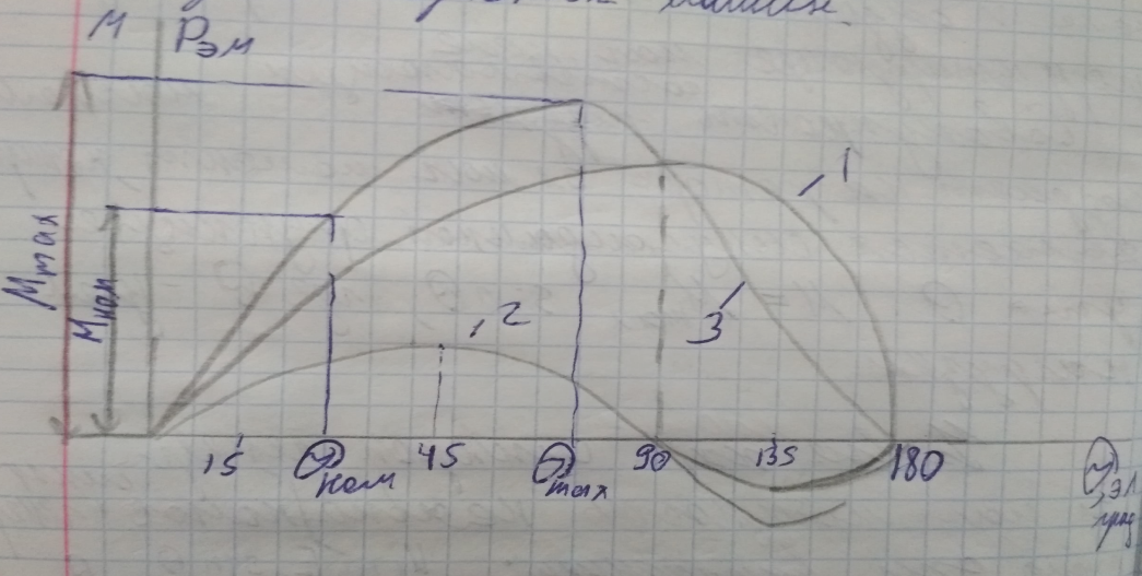 Угловой характеристикой синхронной машины называют зависимость Р1 = f(Θ) при постоянных токе возбуждения, напряжении и частоте сети (If = const, Uc = const, fc = const).