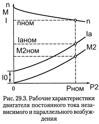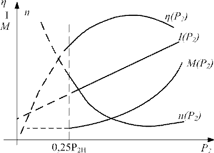 Пунктирные части характеристик относятся к тем нагрузкам, при которых не может быть допущена работа двигателя вследствие большой частоты вращения.
