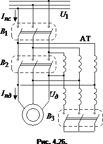 Так, при замкнутых контактах ускорения У1, У2, т. е. при пуске асинхронного двигателя с замкнутыми накоротко контактными кольцами, начальный пусковой момент Мп1 = (0,5 -1,0) Мном, а начальный пусковой ток Iп = (4,5 - 7) Iном и более.