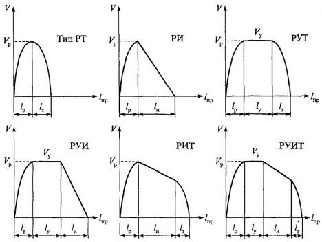 Маневры произв-ся с перемен скоростью. Типы полурейсов обычно представл в виде графиков изменения скорости маневров.