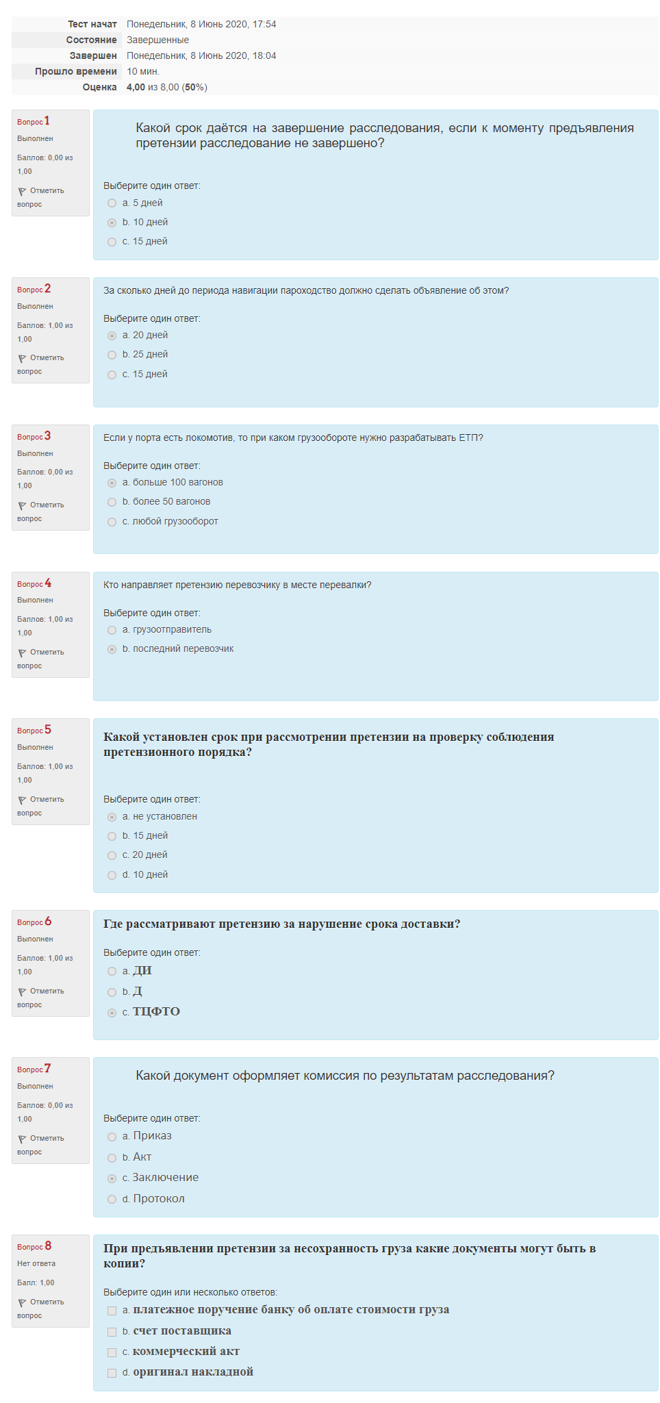 97. Как следует поступить станции назначения с коммерческим актом, составленным на один из вагонов, при поступлении вагонов, перегруженных из одного судна?