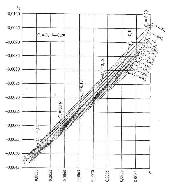 Рис.П.1.1. Номограммы для вычисления параметров Cv и Cs трехпараметрического гамма-распределения методом наибольшего правдоподобия при Cv = 0,15–0,20