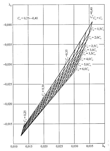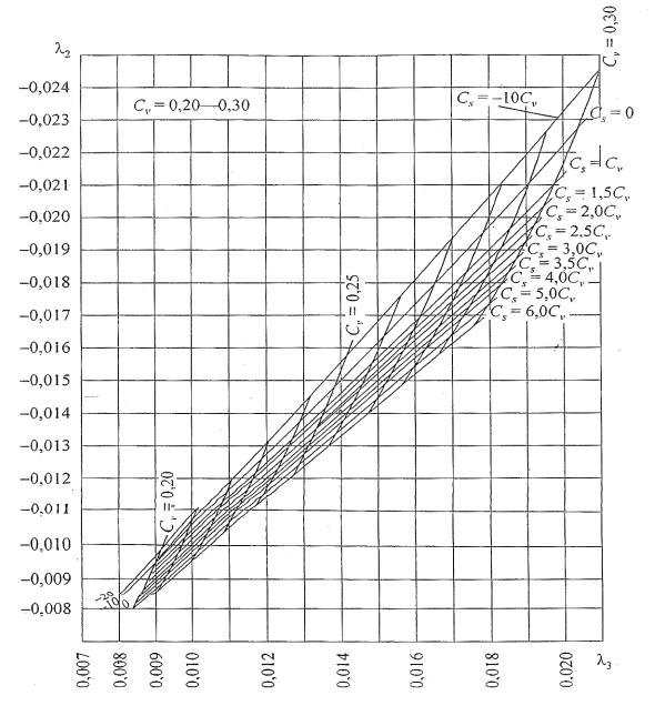Рис.П.1.2. Номограммы для вычисления параметров Cv и Cs трехпараметрического гамма-распределения методом наибольшего правдоподобия при Cv = 0,20–0,30
