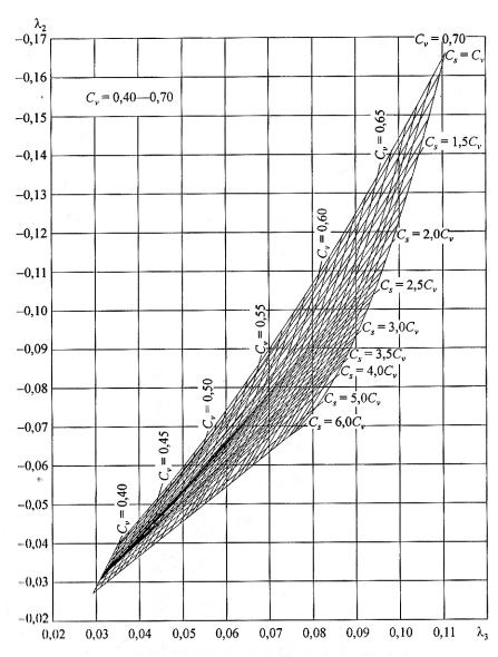 Рис.П.1.4. Номограммы для вычисления параметров Cv и Cs трехпараметрического гамма-распределения методом наибольшего правдоподобия при Cv = 0,40–0,70