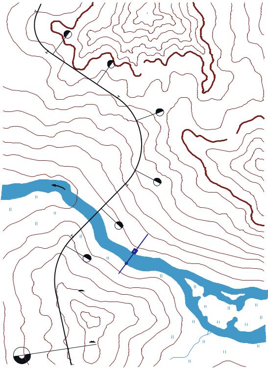 Карта с запроектированной трассой железной дороги в месте пересечения большого водотока приведена на рис. 1.