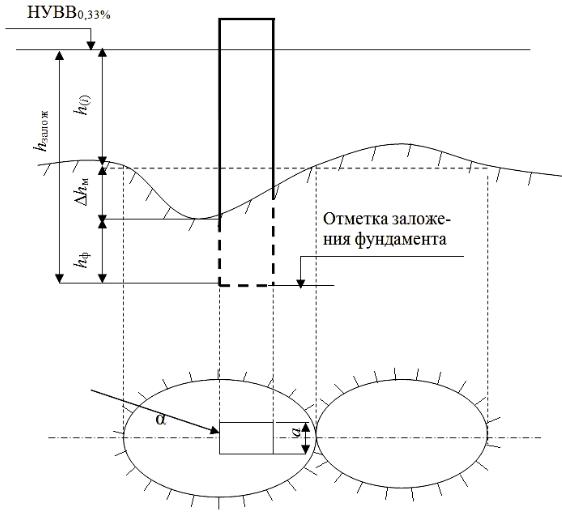 Наибольшая глубина местного размыва у опоры ∆hм (от поверхности дна на линии общего размыва под мостом) будет тогда, когда в воронку размыва беспрепятственно поступают донные наносы, влекомые потоком (рис. 11).