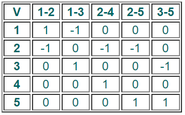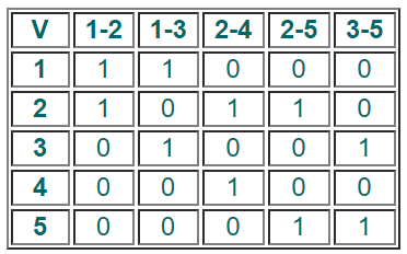 Если вершина инцидентна ребру, то ставим 1. Если вершина не инцидентна ребру, то в соответствующую ячейку ставим 0.