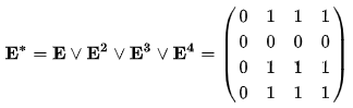 Матрица E1 показывает, в какие вершины мы можем попасть за 1 шаг. Матрица E2 показывает, в какие вершины мы можем попасть за 2 шага. Матрица E3 показывает, в какие вершины мы можем попасть за 3 шага. Матрица E4 показывает, в какие вершины мы можем попасть за 4 шага. Если посмотреть, то за второй шаг мы попадаем во все вершины, в которые не попали за первый шаг. Получим матрицу достижимости. Она показывает, есть ли путь из вершины a в вершину b.
