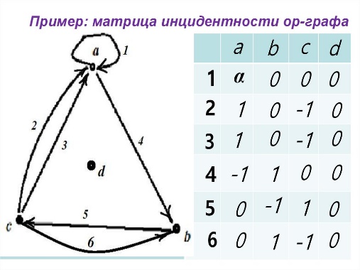Матрица инцидентности для орграфа