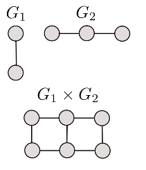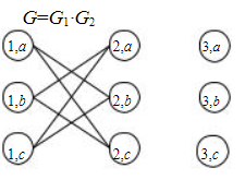 Произведение графов Произведение графов G1, G2, обозначаемой G1·G2, называется граф, множество вершин которого образовано как декартово произведение множеств вершин исходных графов V1·V2, а множество ребер как декартово произведение окрестностей соответствующих исходных вершин (рис. 6.13). V = V1·V2 = {1,2,3}·{a,b,c} = {(1,a), (1,b), (1,c), (2,a), (2,b), (2,c), (3,a), (3,b), (3,c)},