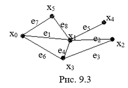 Задача 1. Найти в графе (рис. 9.3) маршрут, цепь, цикл
