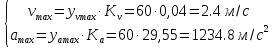 vmax= 2,4 м/с, аmax=1234,8 м/с2.