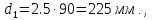 Рассчитываем диаметры зубчатых колес при m=2,5: