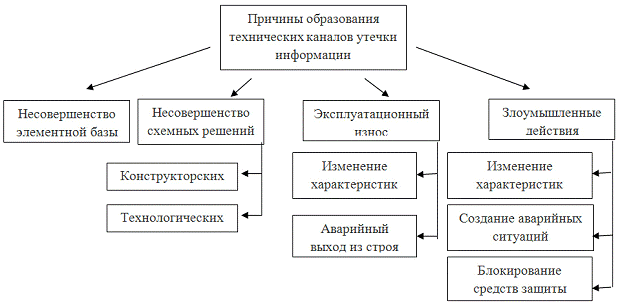 Pиc. 3 Пpичинaми oбpaзoвaния тeхничecких кaнaлoв утeчки инфopмaции