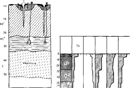 Рис. 14. Профиль арктической типичной гумусной почвы (И. С. Михайлов, 1970)