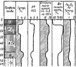 Рис. 19. Состав и свойства мерзлотно-таежной глеевой почвы (Е. М. Наумов, 1971)