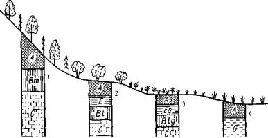 Рис. 26. Типичная буроземная катена в холмистых и низкогорных районах (пояс нения в табл. 16)