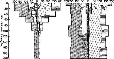 Рис. 40. Солевые профили поверхностного (А) и глубокопрофильного (Б) солон чаков