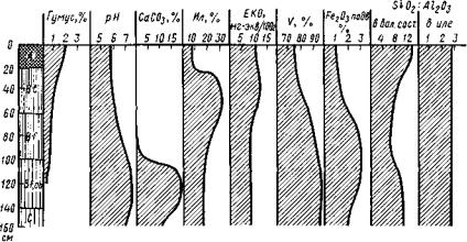 Рис. 52. Профильная характеристика железистой тропической почвы
