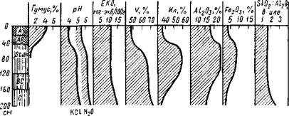 Рис. 57. Профильная характеристика ферраллитной дифференцированной почвы
