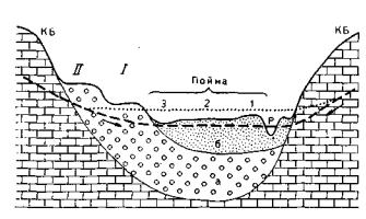 При разливе реки в половодье наибольшая скорость потока создается в прирусловой части поймы. Соответственно в прирус ловье откладывается наиболее грубый галечниково-песчаный аллю вий. В центральной части поймы аллювий более тонкий, пылеватосуглинистый. В притеррасном же понижении, обычно занятом