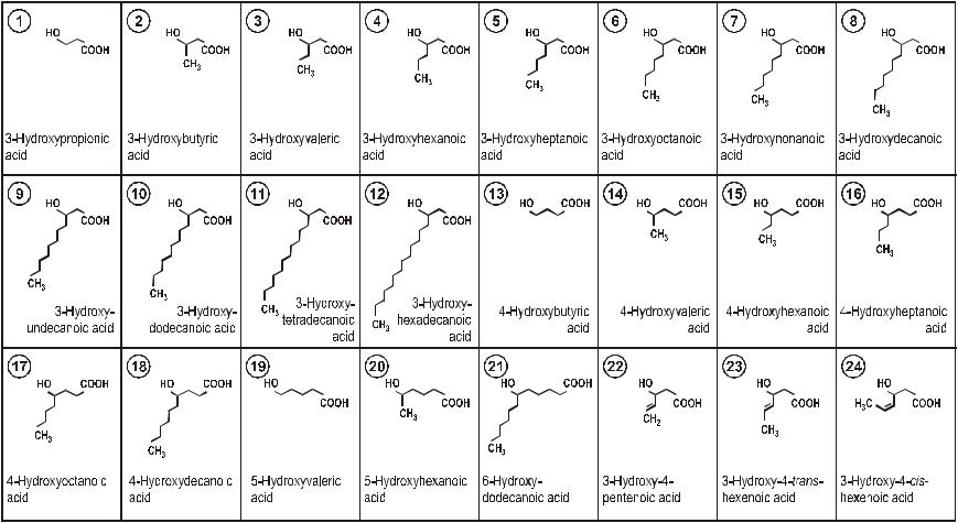 Известные типы полиоксиалканоатов (по данным Steinbüchel, Valentin, 1995b)