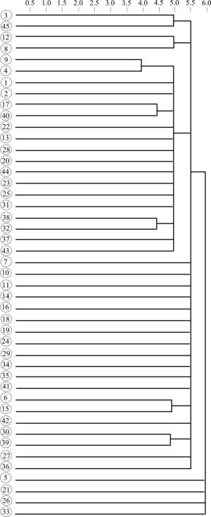 Отсутствие достоверных изменений между всеми группами животных по 26 исследованным показателям (масса животных и внутренних органов; морфология и биохимия крови, морфометрические показатели реакции тканей в месте имплантации) подтверждено кластерным анализом, выполненным методом одного звена с использованием авторской программы доктора биологических наук М. И. Гладышева (рис. 6.10).