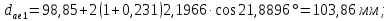Диаметр делительной окружности: шестерни, de1 колеса, de2