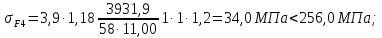 YF3, YF4 – коэффициенты формы зуба шестерни и колеса, определяются по таблице 4.4 [4] в зависимости от эквивалентного числа зубьев шестерни и колеса, принимаем YF4 = 3,9 и YF3 = 4,3;