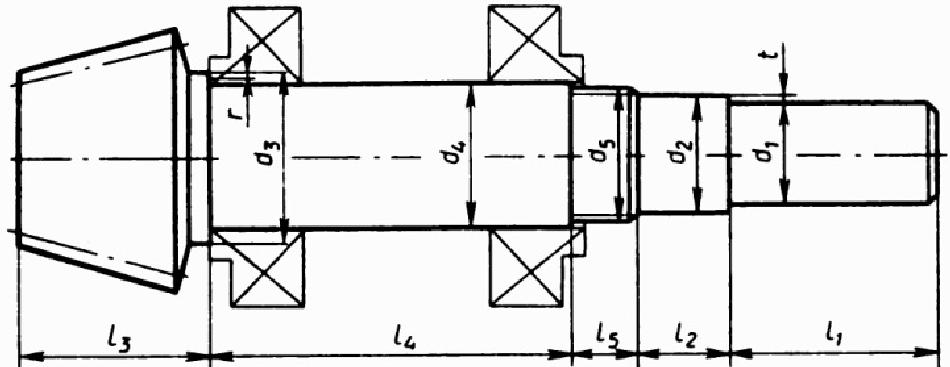 Определим диаметр ступени под подшипник по формулам (5.1), (5.3)