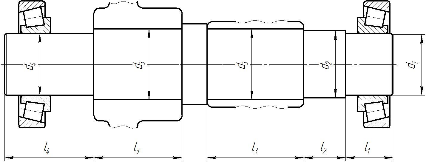 По результатам расчетов чертим эскиз первого промежуточного вала редуктора который показан на рисунке 5.2.