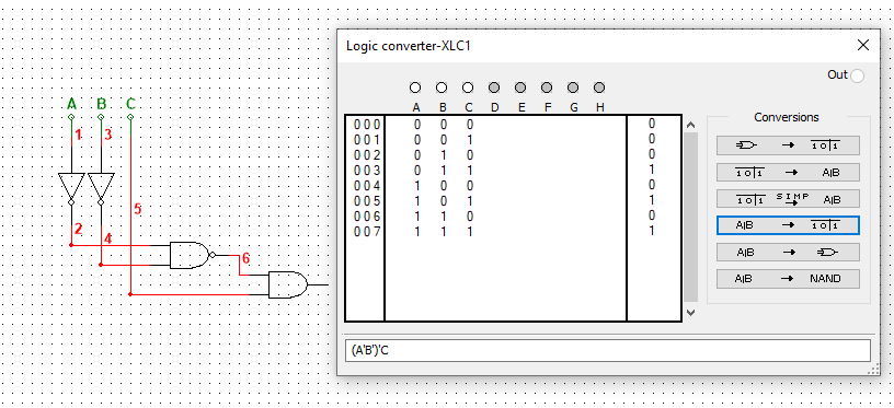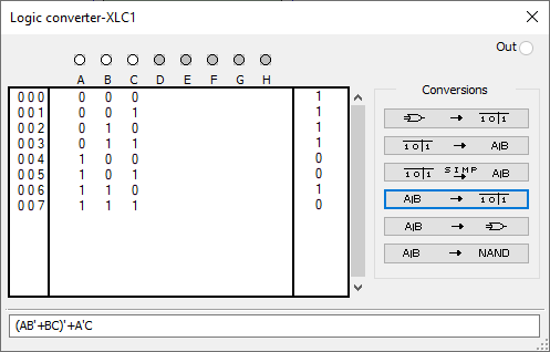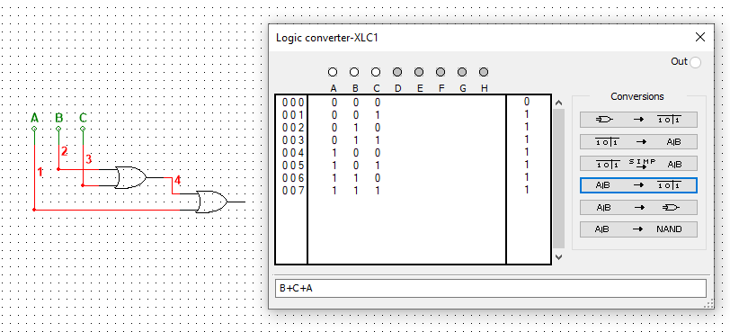 Рисунок 1-Таблица истинности в multisim