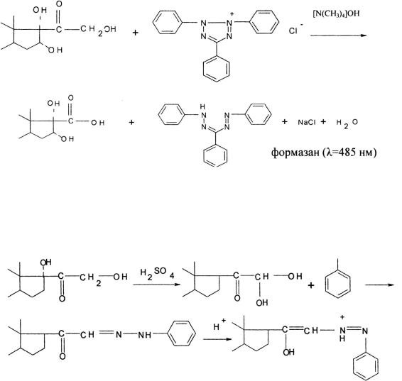 Ниже представлено уравнение химической реакции между α-кетоль- ной группой кортикостероидов и хлоридом трифенилтетразолия с образованием окрашенного формазана (Е1%1см = 400–405). Реакция 21-эфиров кор-
