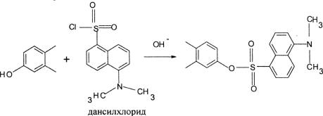 стых эфиров находится около 284 нм, а максимум испускания лежит в области 310–327 нм. Низкая интенсивность флюоресценции эстрогенов и малые длины волн возбуждения и испускания ограничивают возможности данного метода. Как правило, эстрогены переводят во флюоресцирующие производные с помощью химических реакций, например, с дансилхлоридом в щелочной среде: