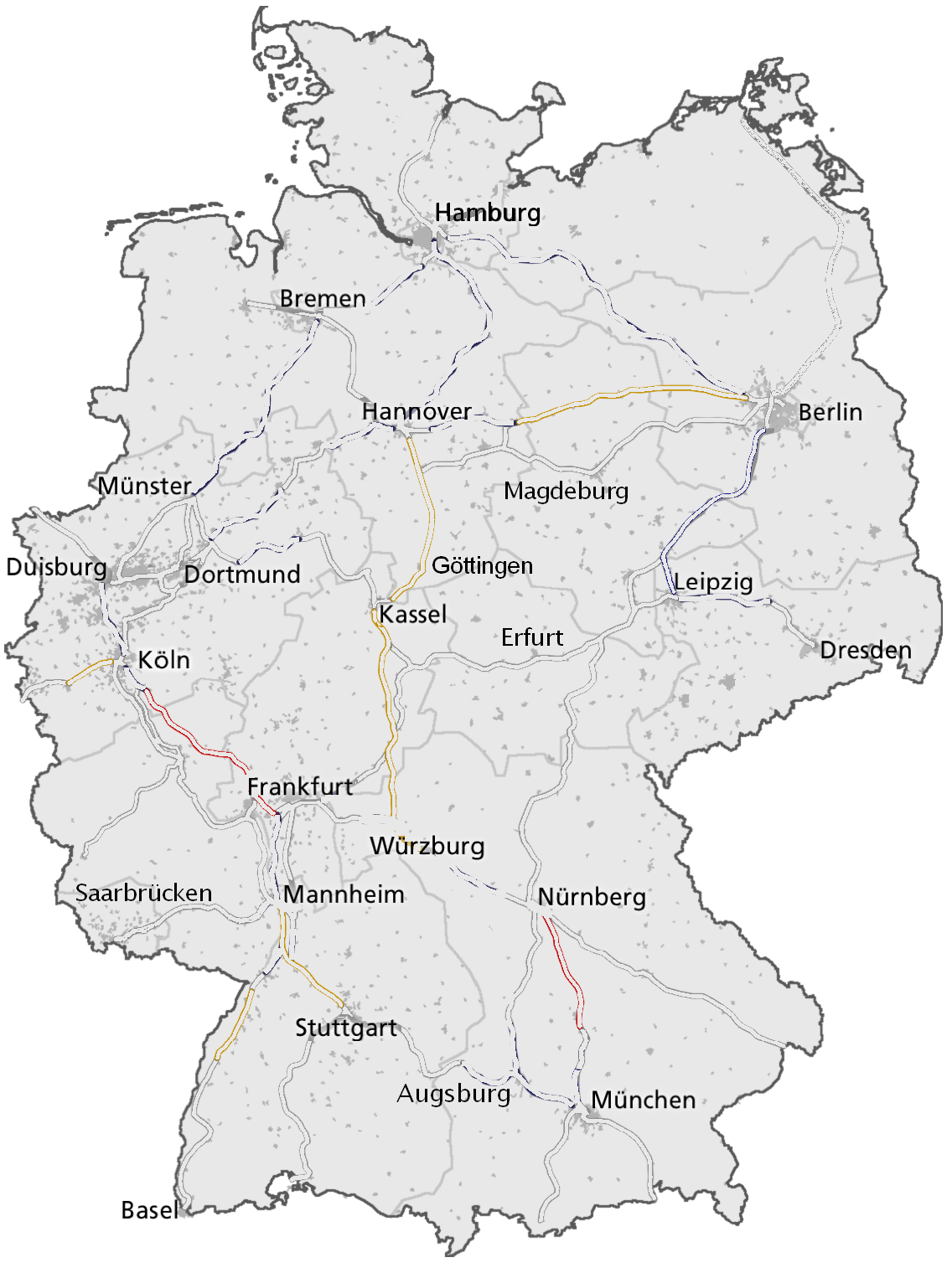 Первая линия ВСМ (основные характеристики: участок ВСМ, год ввода, протяженность, стоимость сооружения, скорость движения и др.) |