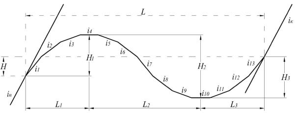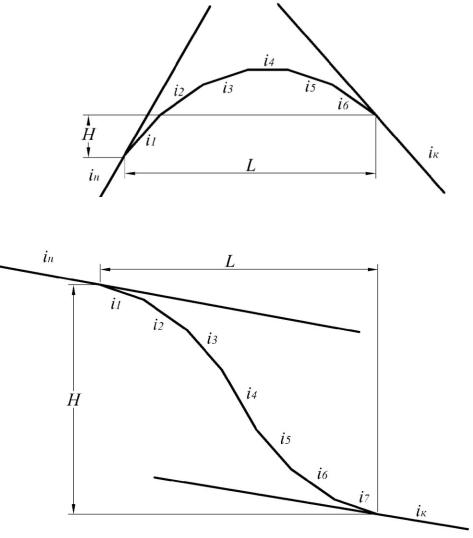 Общая протяженность профиля криволинейного очертания L (м), разность отметок по концам профиля – Н (м).