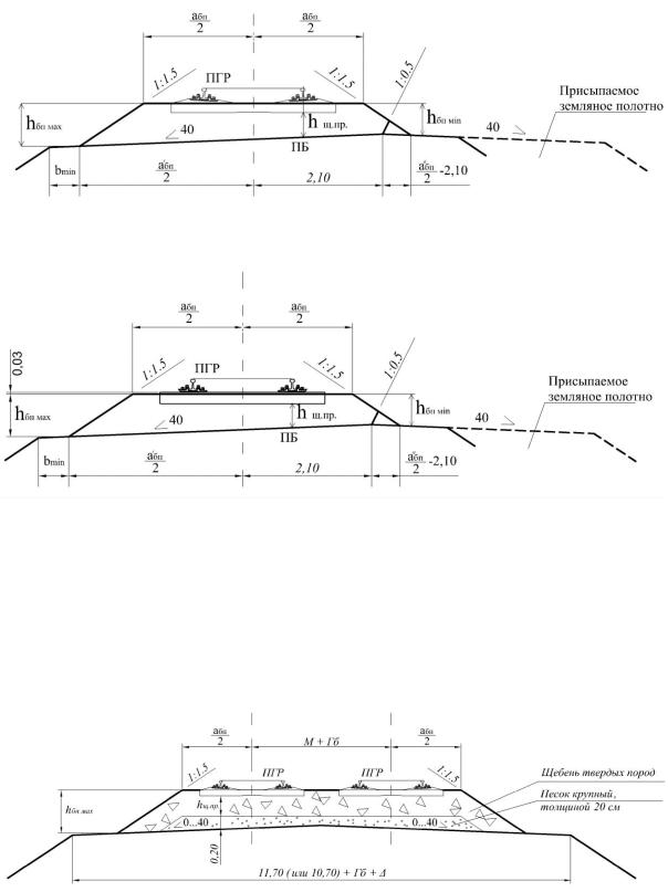 Рис. 8. Типовая балластная призма для двухпутного земляного полотна: 11,70 м (или 10,70) – нормативная ширина земляного полотна;