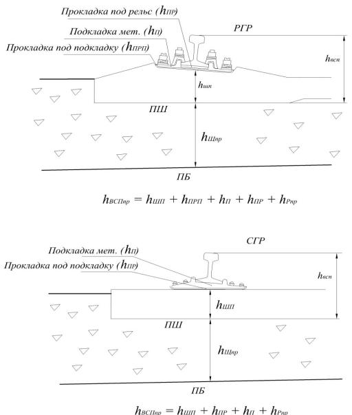 где hвсппр – высота проектного верхнего строения пути, м; |