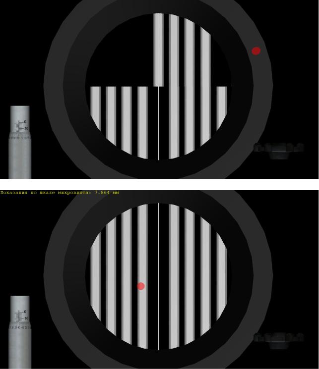 1.Вращением головки микровинта компенсатора совместите верхнюю и нижнюю интерференционные картины.