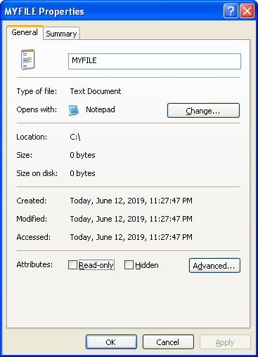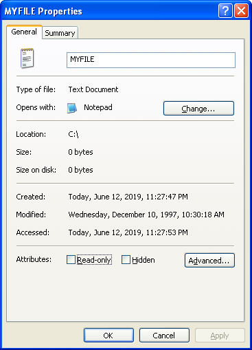 Старые значения даты и времени файла MYFILE.txt
