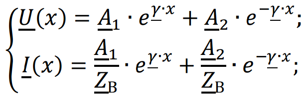 а ) определить волновое сопротивление Zв, постоянную γ=α+jβ, фазовую скорость V, длину волны λ, комплексы действующих значений токов напряжения а также активные мощности в начале линии P1 и конце линии P2, эффективность передачи энергии по линии (КПД)