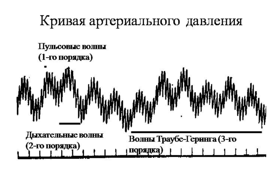 - Волны третьего порядка - обусловлены периодическими изменениями тонуса сосудодвигательного центра. Они представляют собой еще более медленное повышение и понижение показателей давления. Каждая из них охватывает несколько дыхательных волн ІІ порядка. Волны ІІІ порядка частенько появляются по причине недостаточного снабжения мозга кислородом (высотной гипоксии), после перенесенной кровопотери либо отравления несколькими ядами.