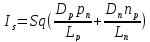 - Uk – контактна різниця потенціалів на p-n – переході; Nd, Na – концентрації донорних та акцепторних домішок у матеріалі; q - заряд електрона |