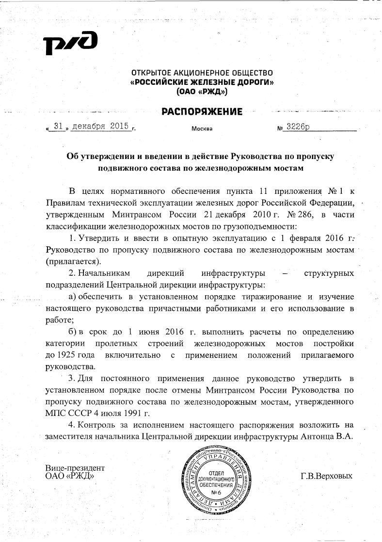 распоряжением ОАО «РЖД» от ___ декабря 2015 г. №____